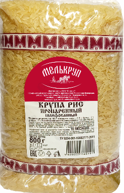 Рис пропаренный шлифованный, торговой марки «Мелькруп», Российская Федерация.